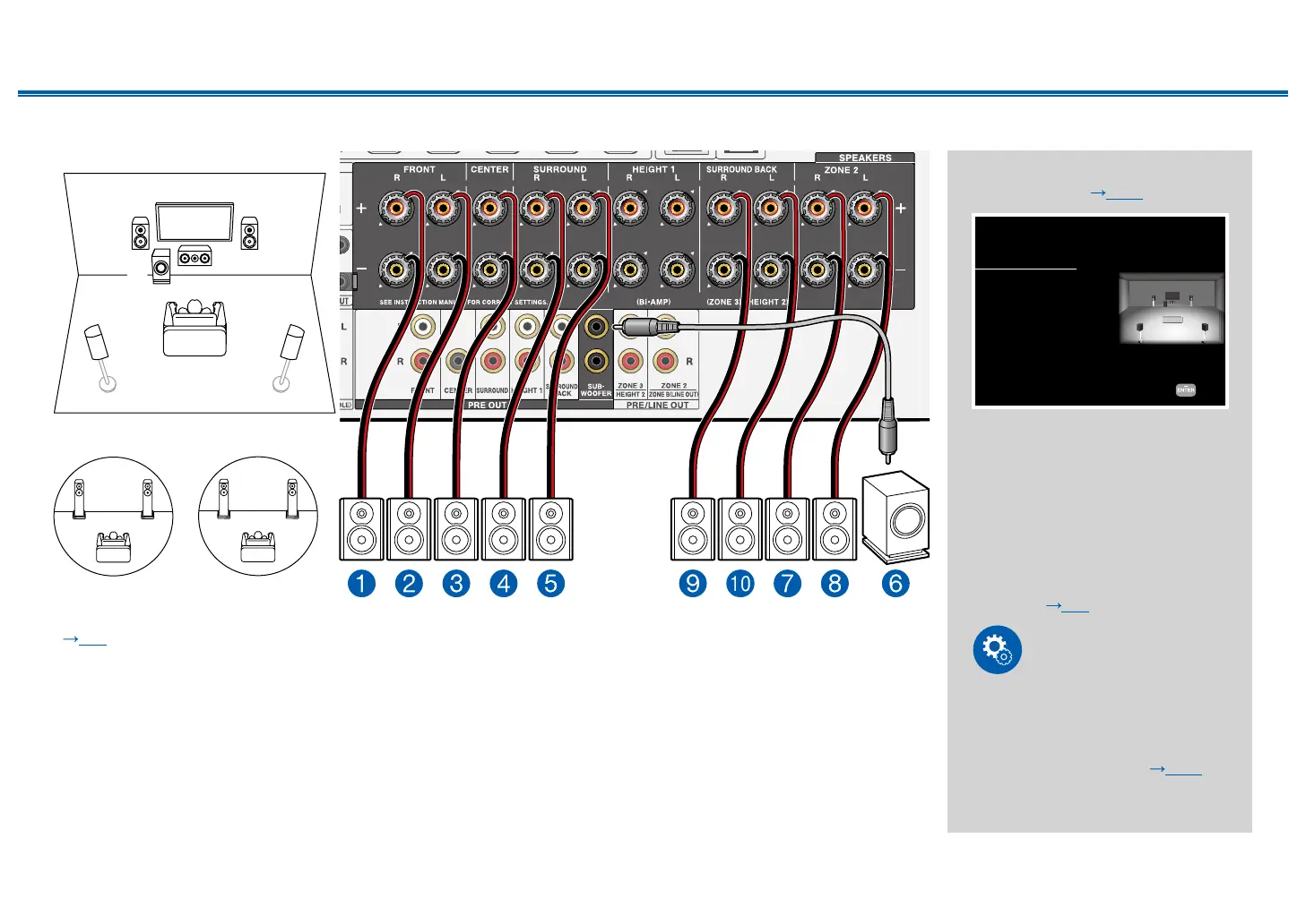 MAIN ROOM: This is a basic 5.1 Channel System. For details of the speaker layout, refer to "Speaker Installation"