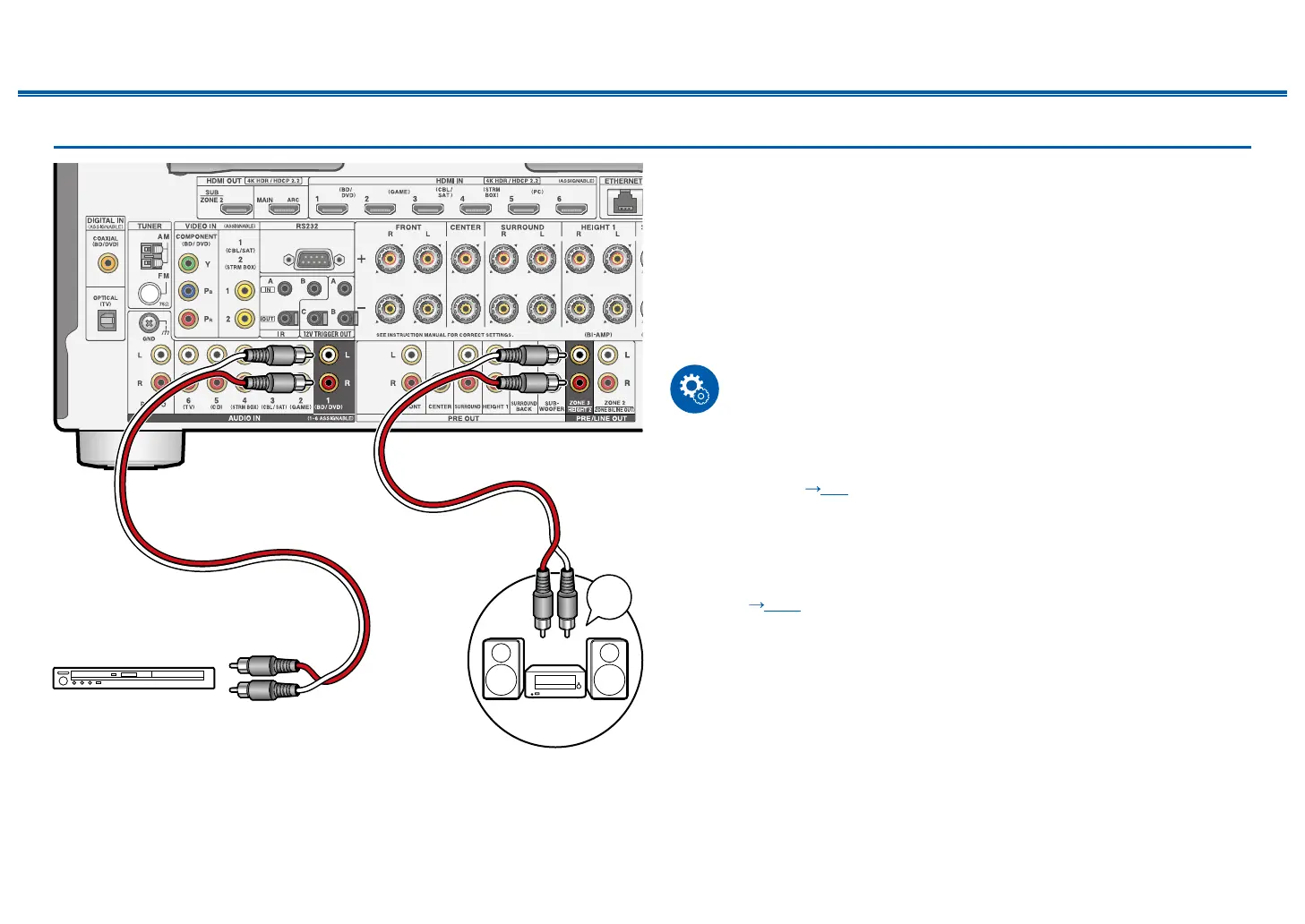 an analog audio cable for connection. Note that ZONE 3 output is not possible