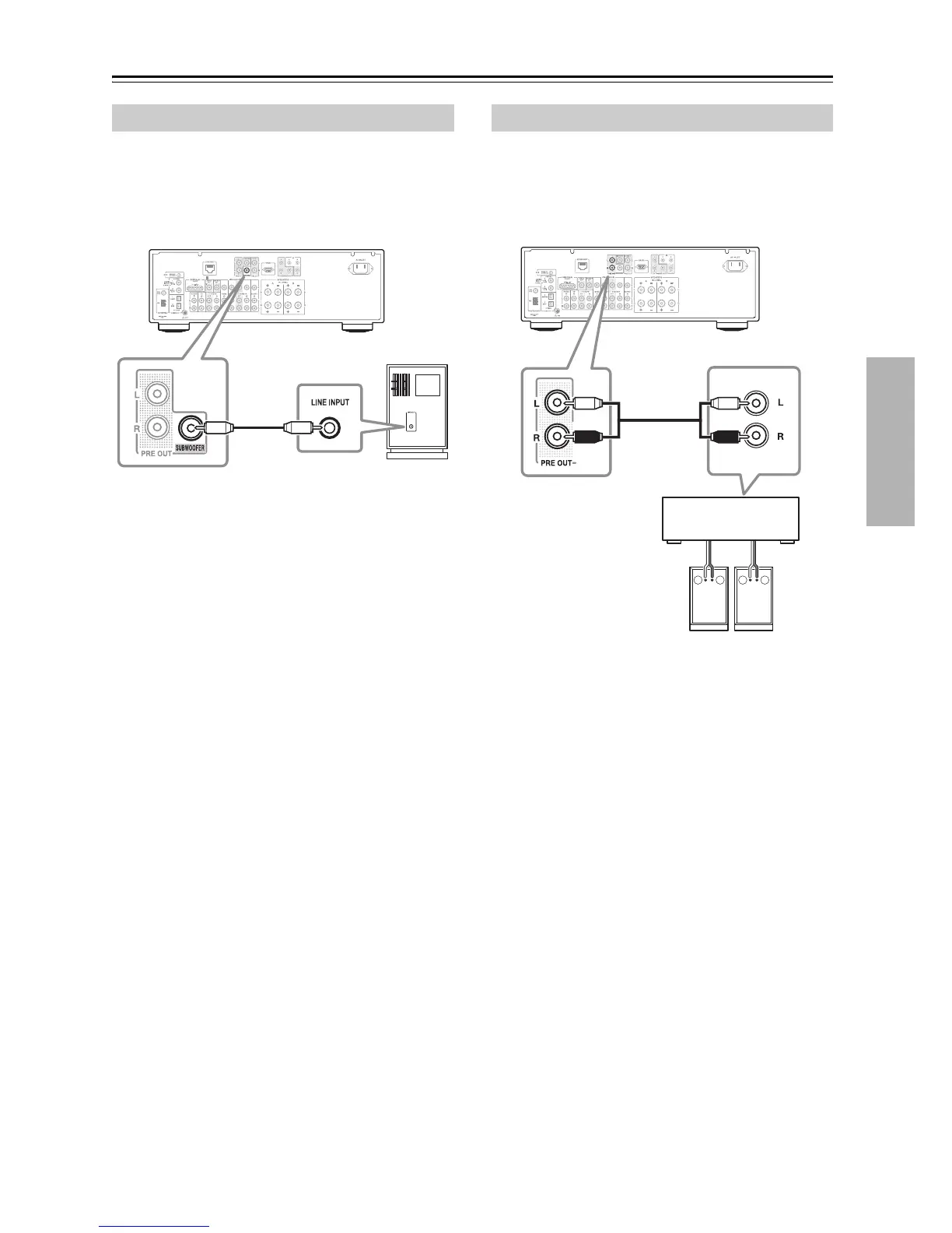 Using a suitable cable, connect the receiver’s PRE OUT: