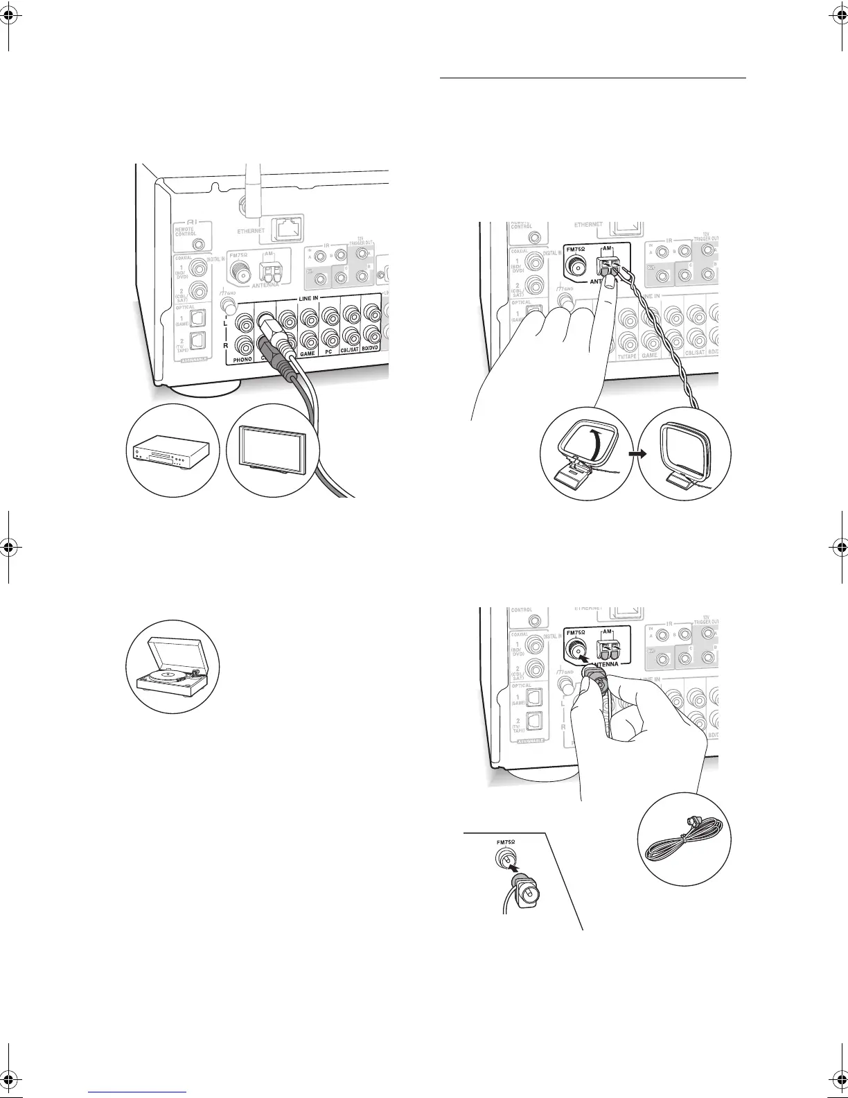 0 Connect the record player (MM cartridge) to the LINE