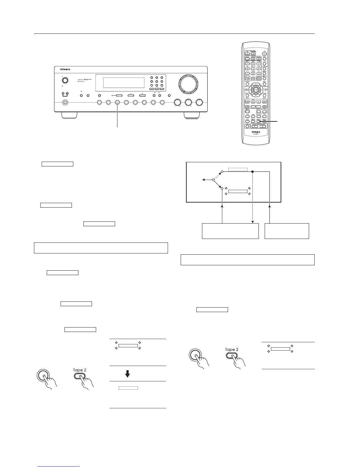 button on the remote controller or the Tape 2 Monitor button on the
