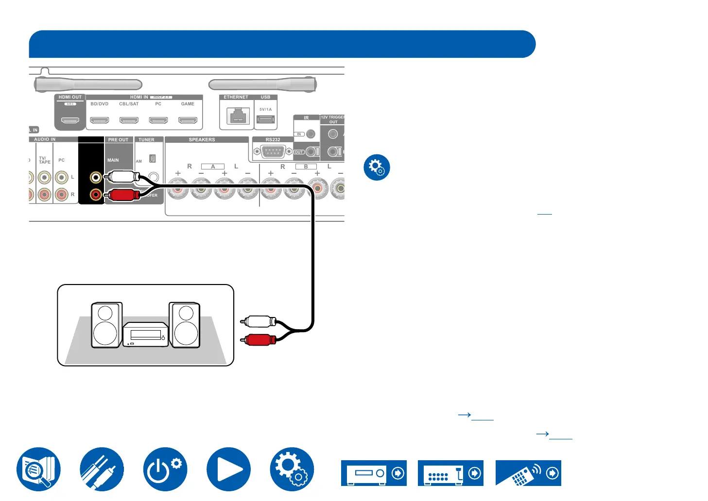 use an analog audio cable for connection. Note that ZONE 2 output is not