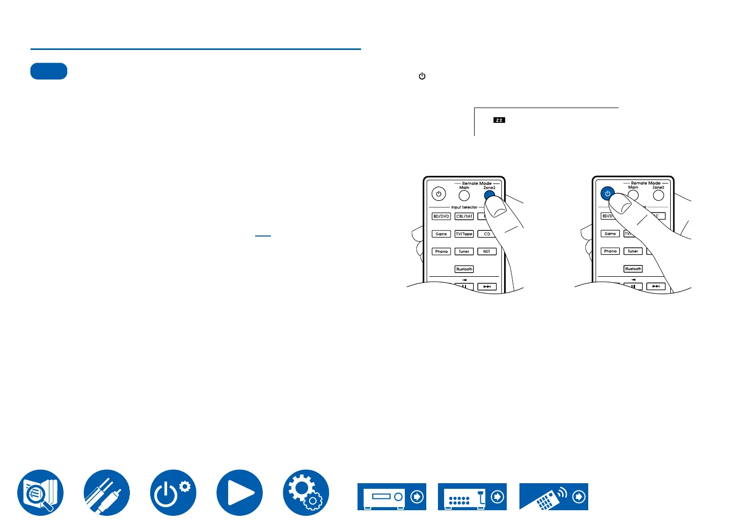 2. Press On/Standby on the remote controller. "Z2" lights in the main