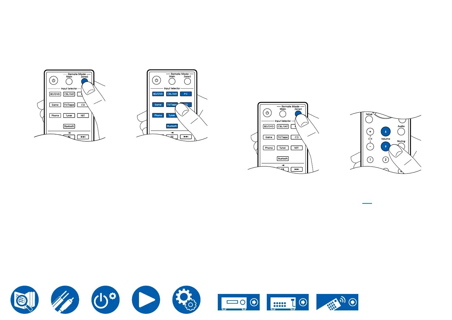 • The remote controller switches to the mode for controlling ZONE 2.