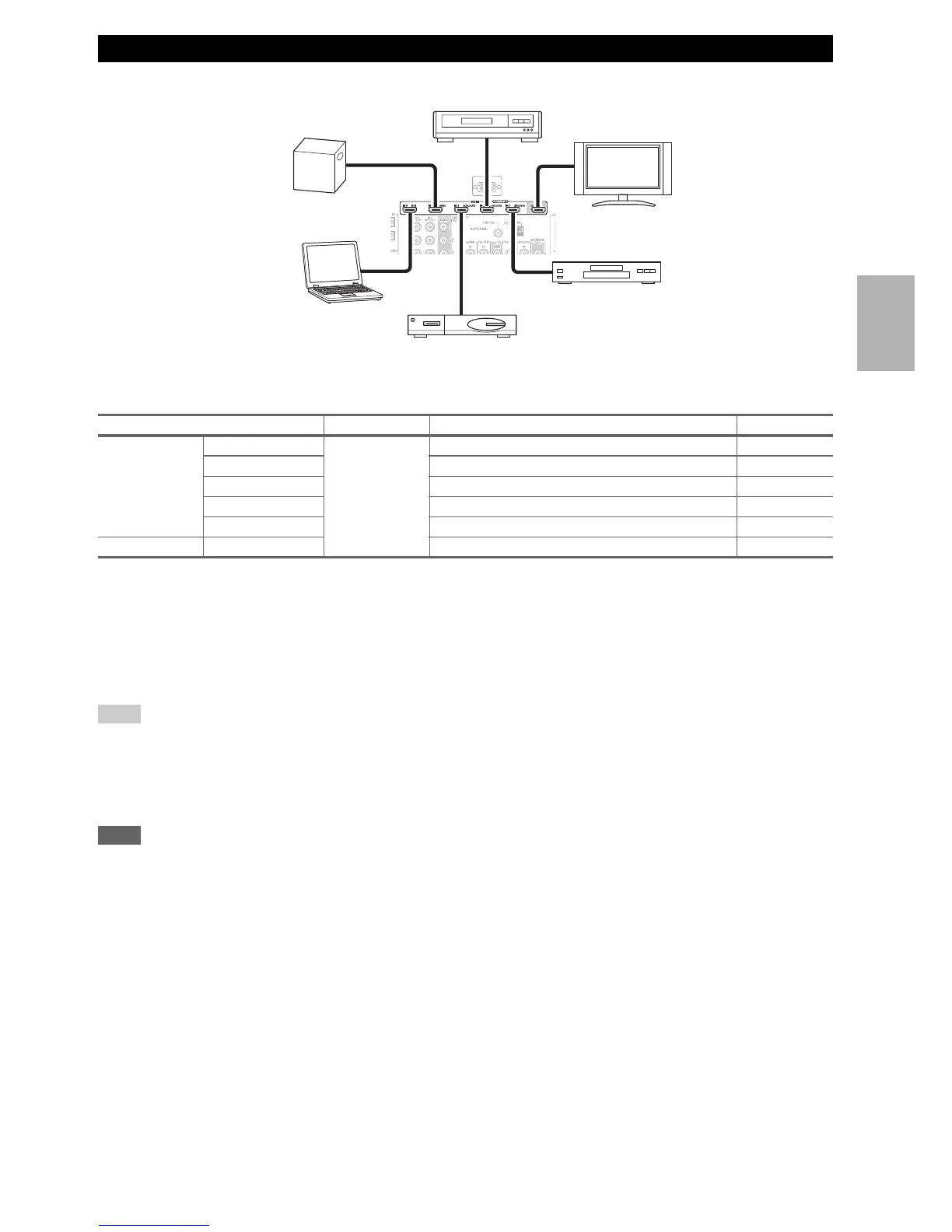 Refer to “About HDMI” (➔ 68) and “Using an RIHD-compatible TV, Player, or Recorder” (➔ 69).