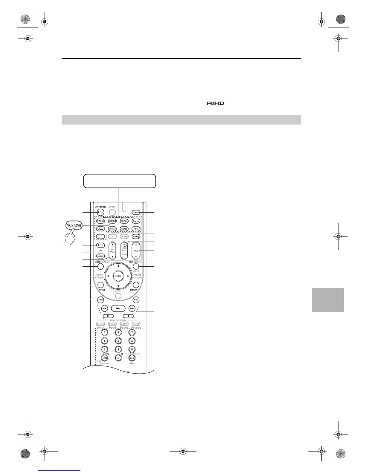 For details on entering a remote control code for a differ-