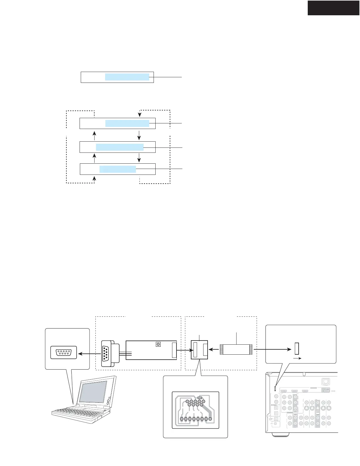 1. While the target unit is off, connect 0JFLASH and 0JFLASHEX (for non-Main) to RS232 port of the PC.