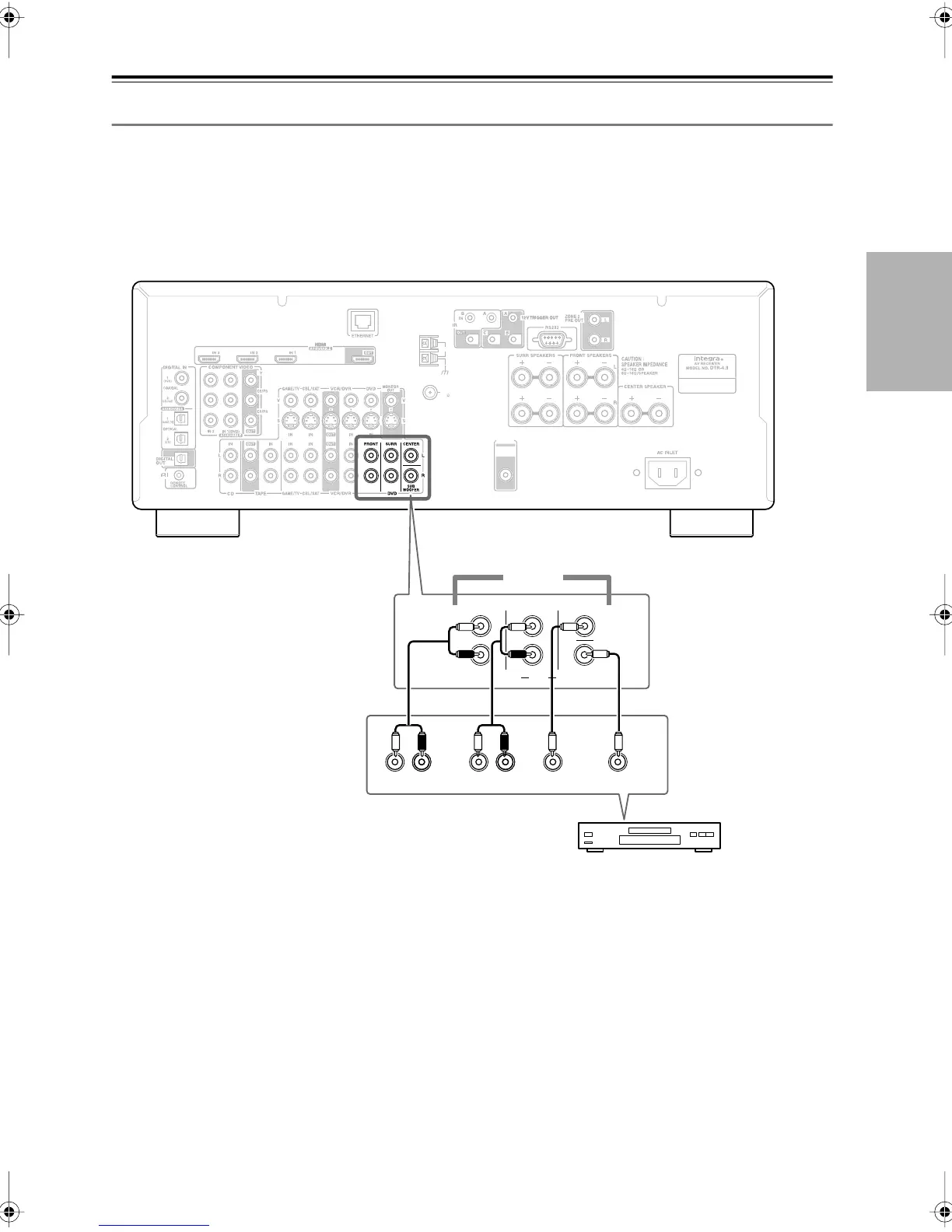 Use a multichannel analog audio cable, or several normal audio cables, to connect the AV receiver’s DVD IN FRONT