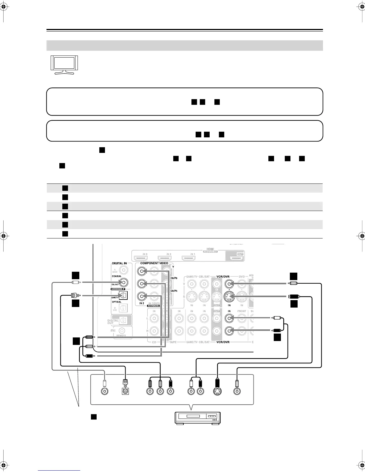 Connection AV receiver Signal flow VCR or DVR Picture quality