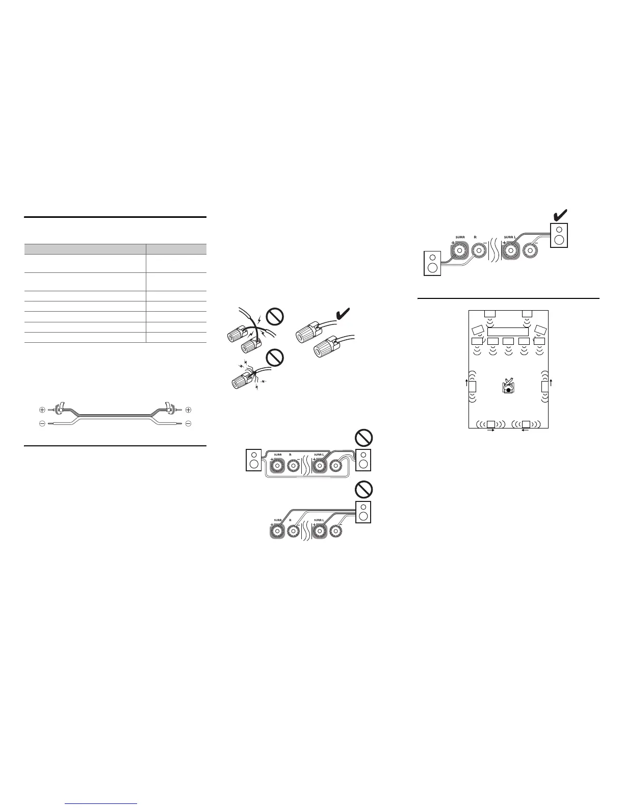 • Don’t connect more than one cable to each speaker