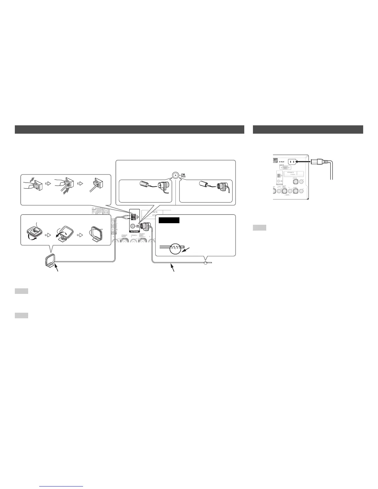 This section explains how to connect the supplied indoor FM antenna and AM loop antenna.