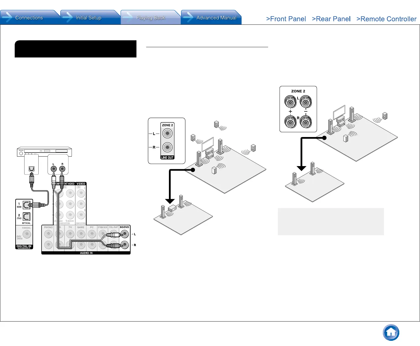 1 Only analog and 2ch PCM audio signals can be output to Zone 2�