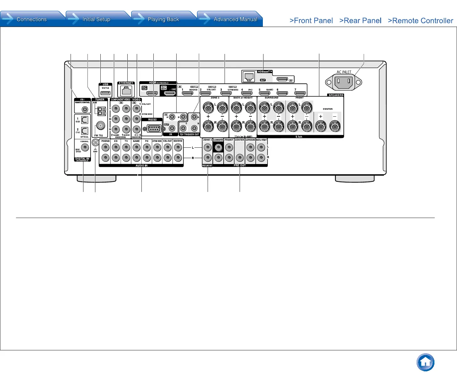 8 IR IN A/B, IR OUT jack: Connected to the multiroom
