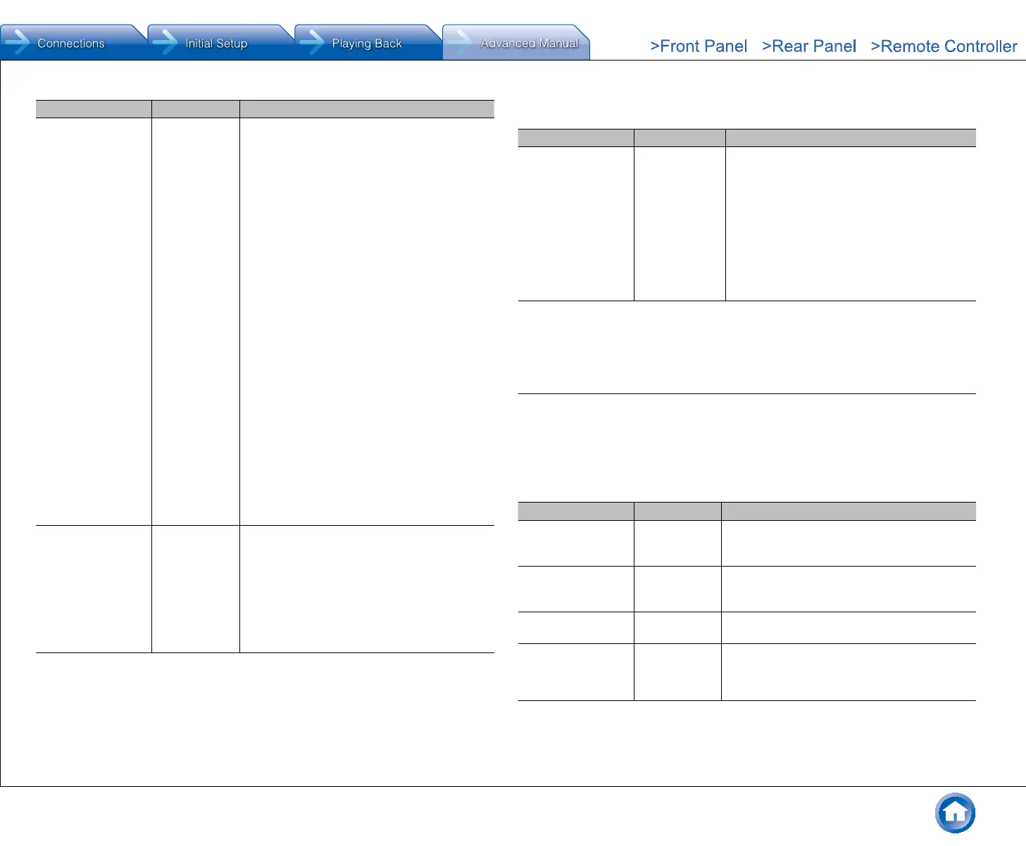 Mono/Multiplex Full Mono Set the listening mode for playing Dolby Digital