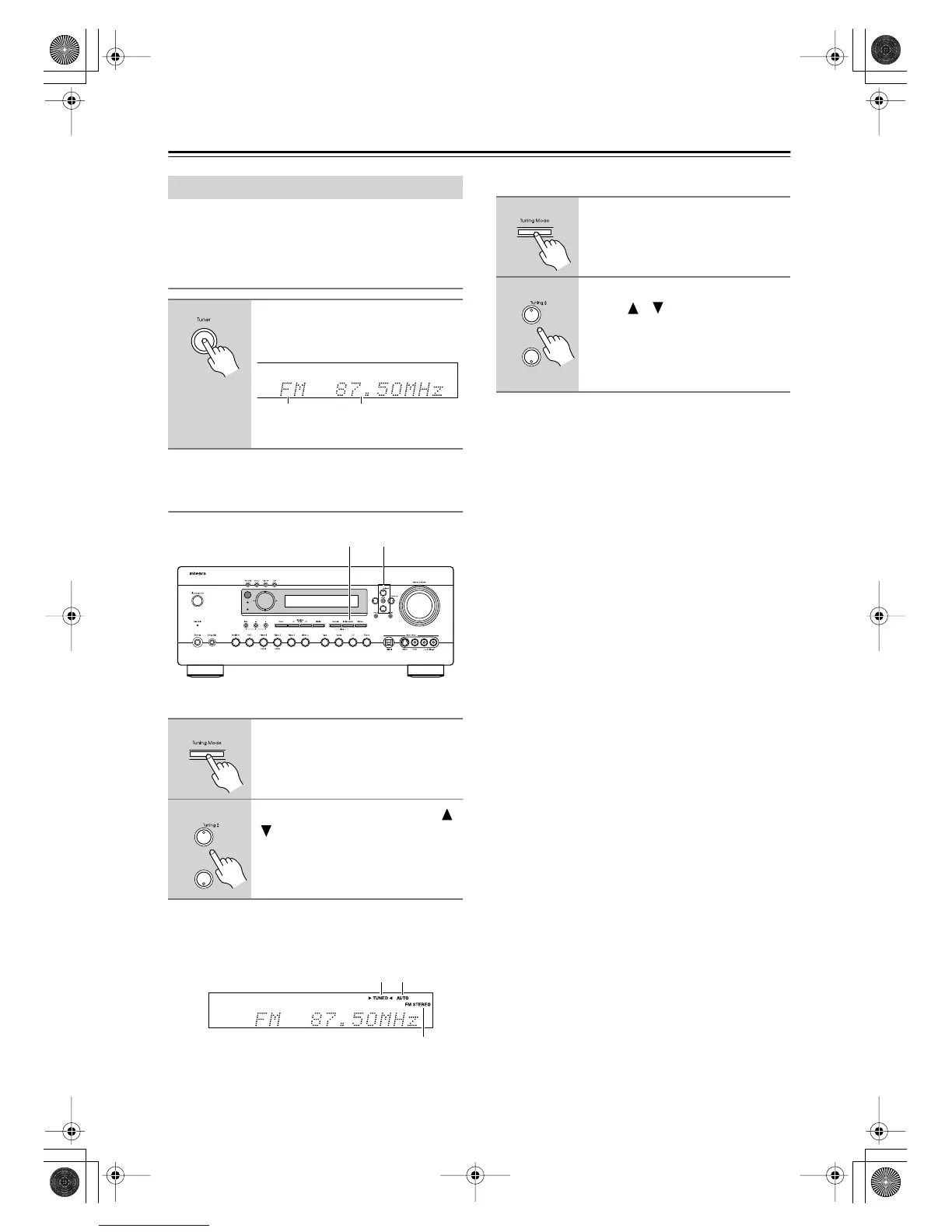0.05 MHz steps for FM and 9 kHz steps for AM.