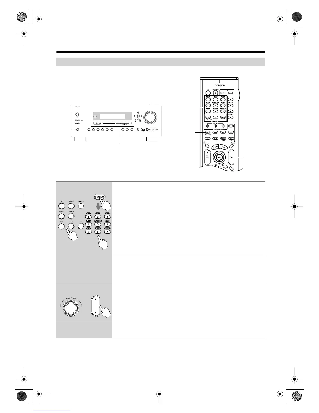 To adjust the volume, use the Master Volume control or the remote con-