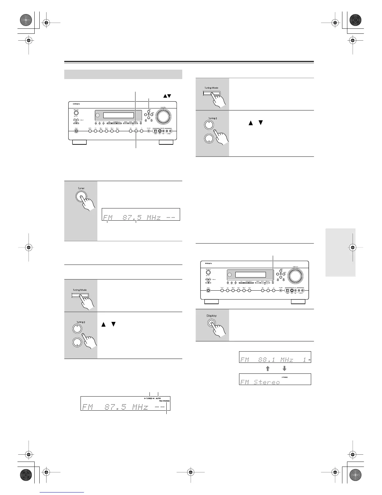 0.05 MHz steps for FM and 9 kHz steps for AM.