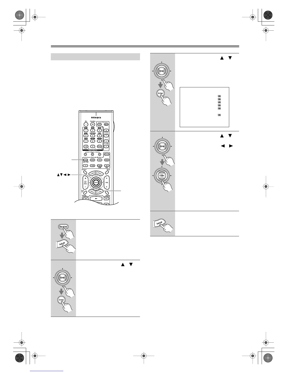 receiver by using its [Setup] button, arrow buttons, and