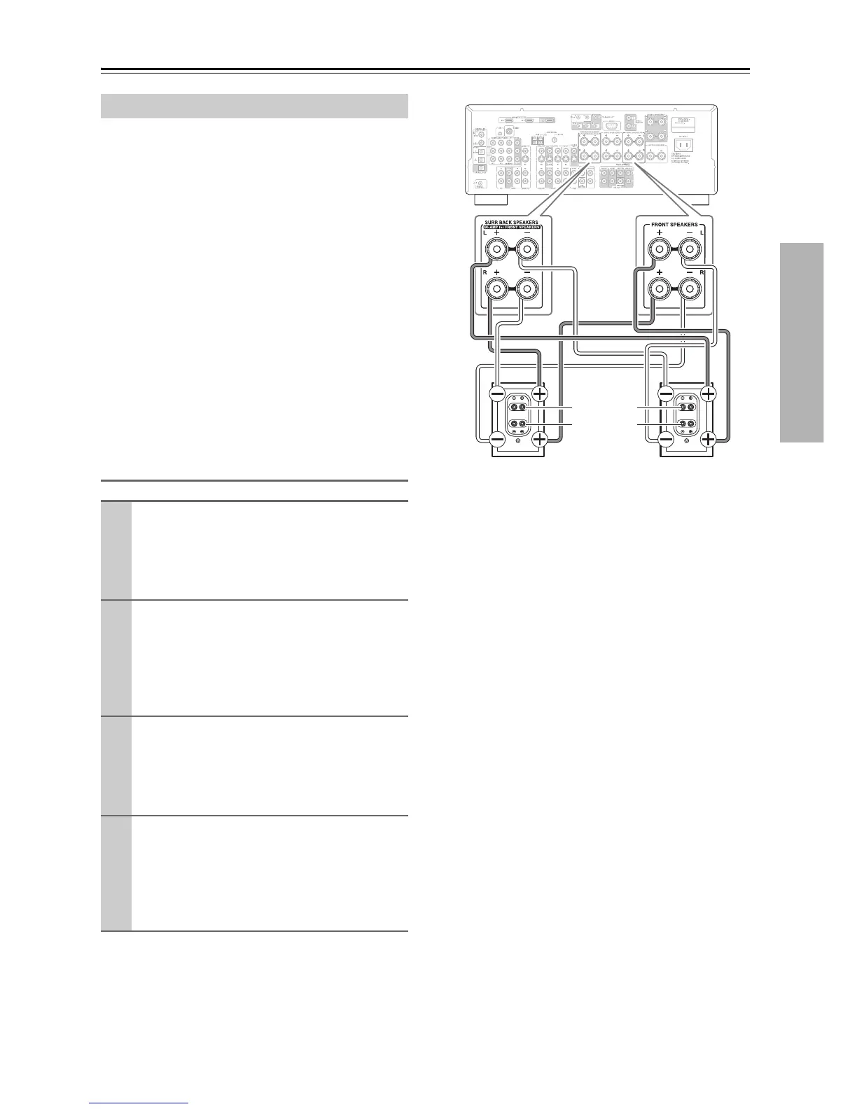 • For bi-amping, the FRONT L/R terminal posts con-