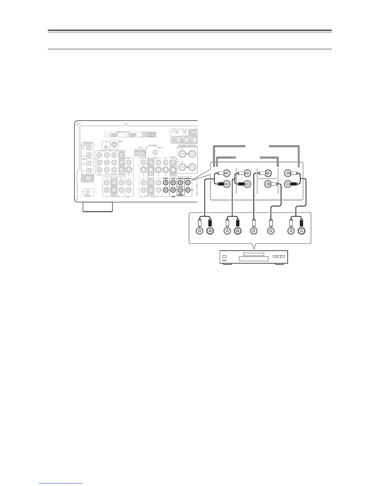 Use a multichannel analog audio cable, or several normal audio cables, to connect the AV receiver’s DVD IN FRONT