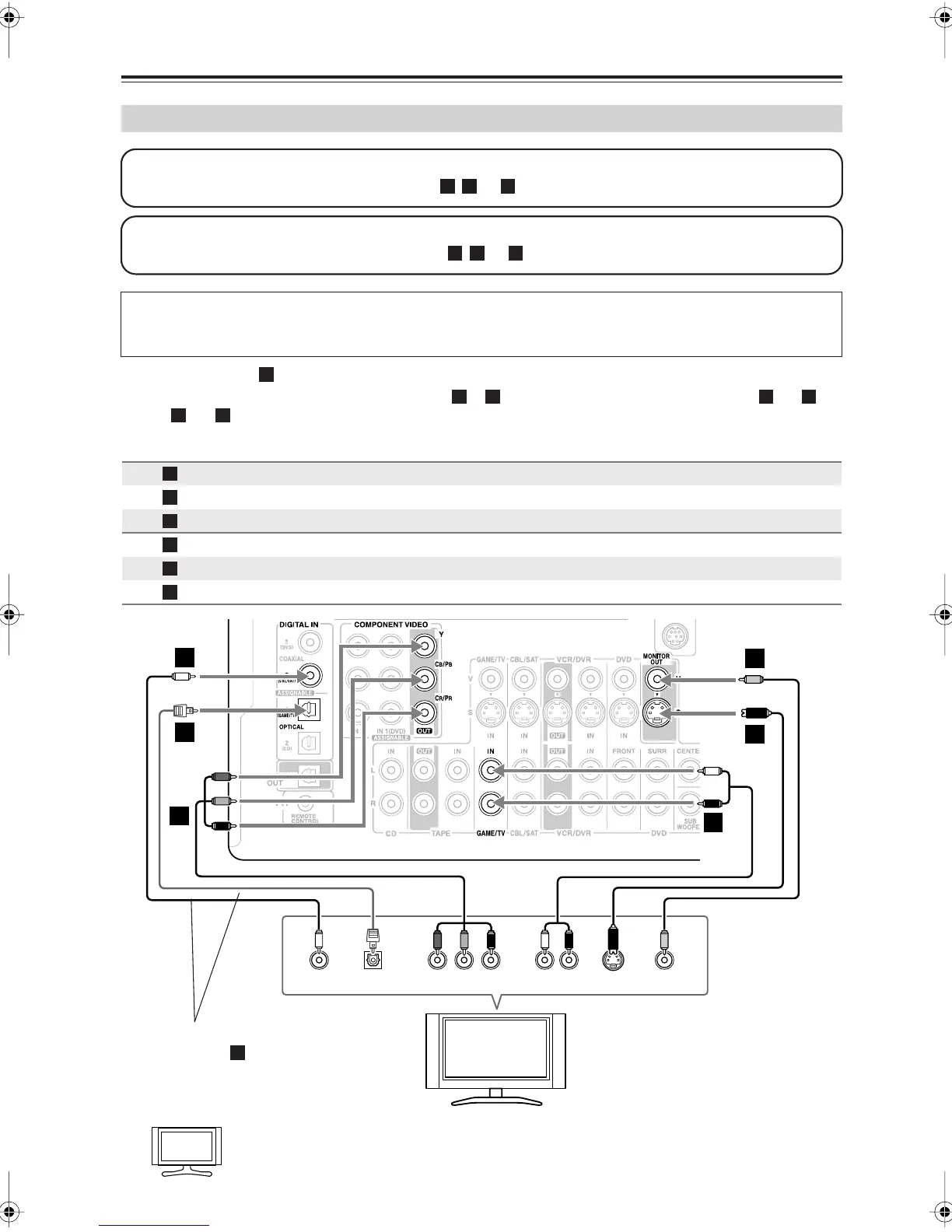 •To enjoy Dolby Digital and DTS, use connection or . (To record or listen in Zone 2 as well, use and ,