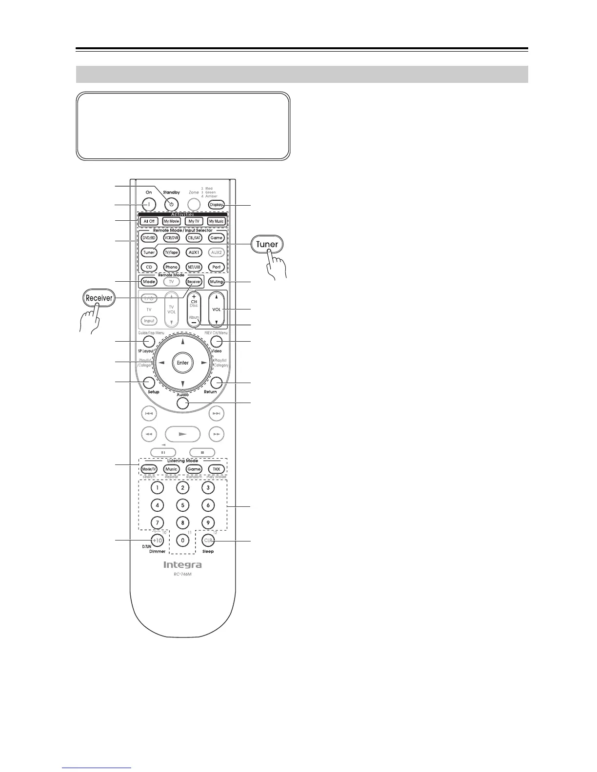 To control the AV receiver, press the [Receiver] but-