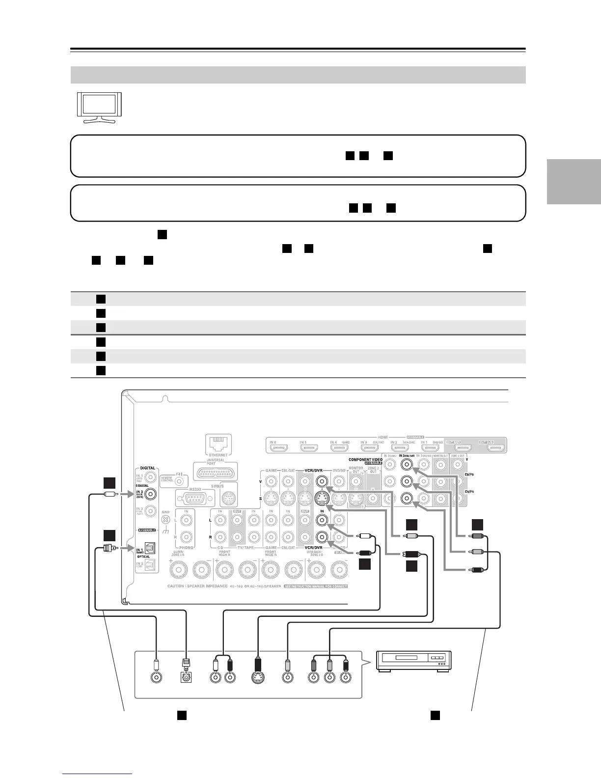 • With connection , you can listen to the VCR or DVD recorder in Zone 2 or Zone 3.