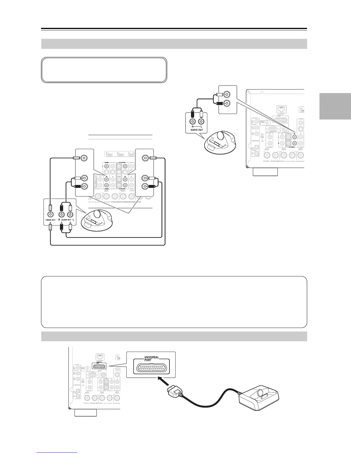 • Connect the RI Dock to the AV receiver with an u cable (see page 40).