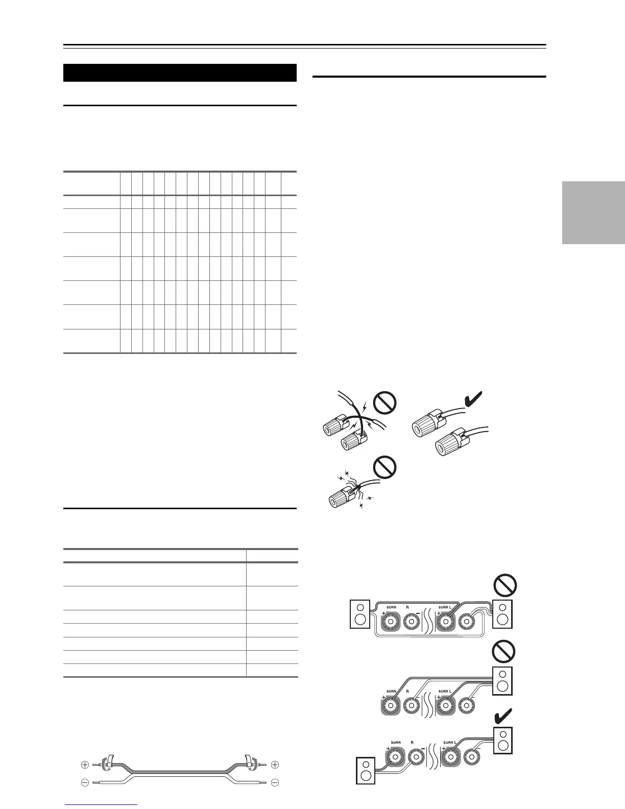 • Don’t connect more than one cable to each speaker ter-