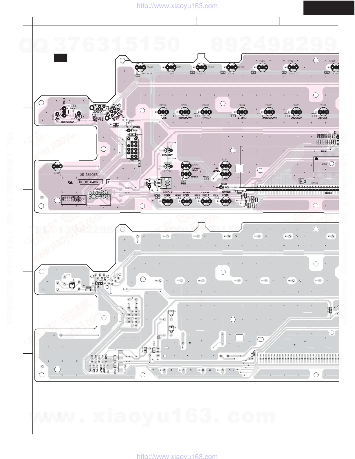 Integra DTR-6.5 - PRINTED CIRCUIT BOARD VIEW 6 - Display Circuit (Side A;B); Display Circuit PC Board (NADIS-8406) - Side A; Display Circuit PC Board (NADIS-8406) - Side B