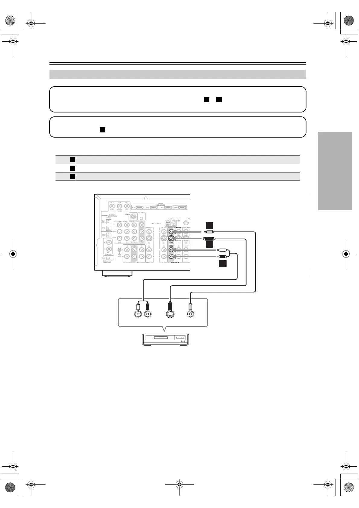 video source to be recorded must be connected to the AV receiver via the same type of connection.