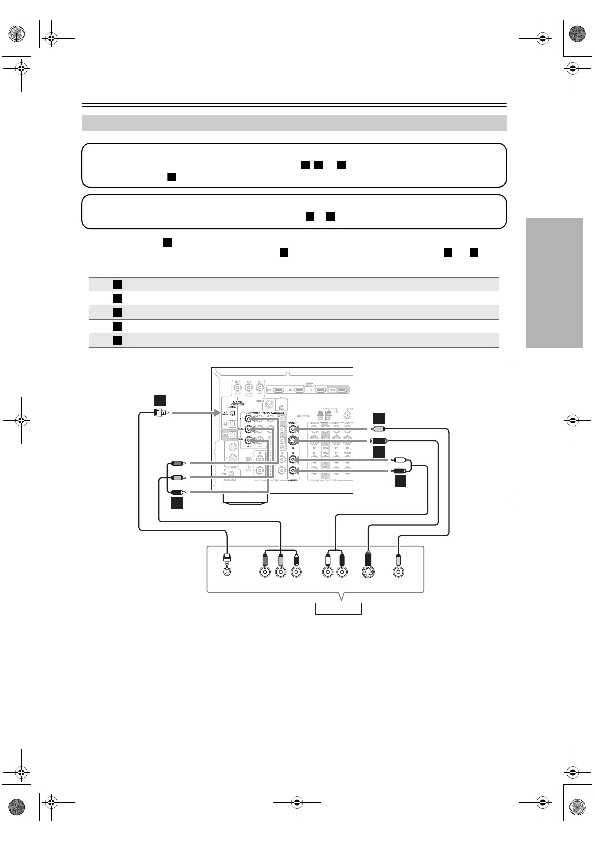 • To enjoy Dolby Digital and DTS, use connection . (To record or listen in Zone 2 as well, use and .)
