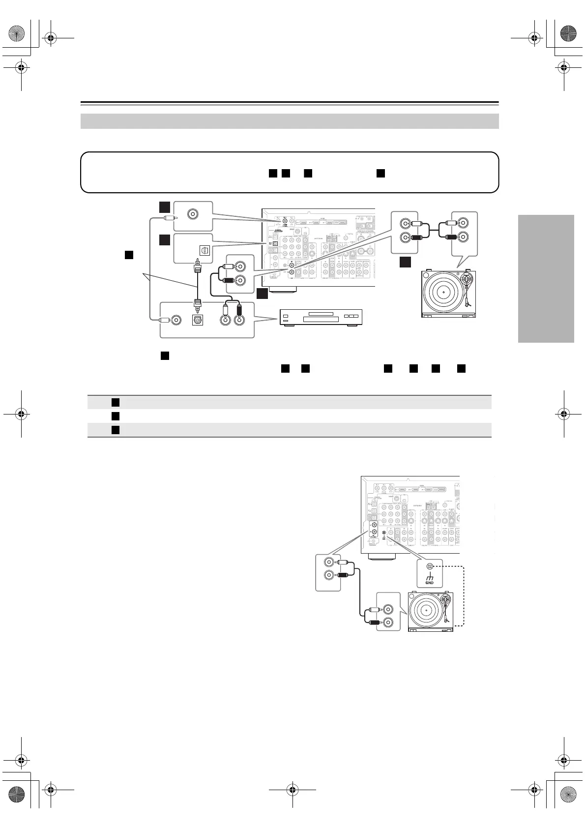 • To connect the CD player digitally, use connection or . (For recording, use and , or and .)