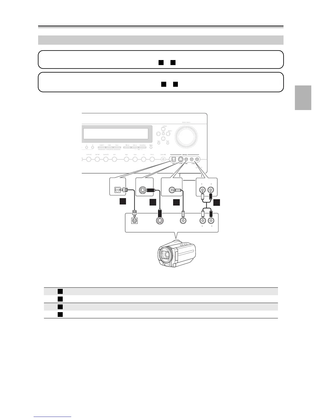 Choose an audio connection that matches the camcorder ( or ), and then make the connection.