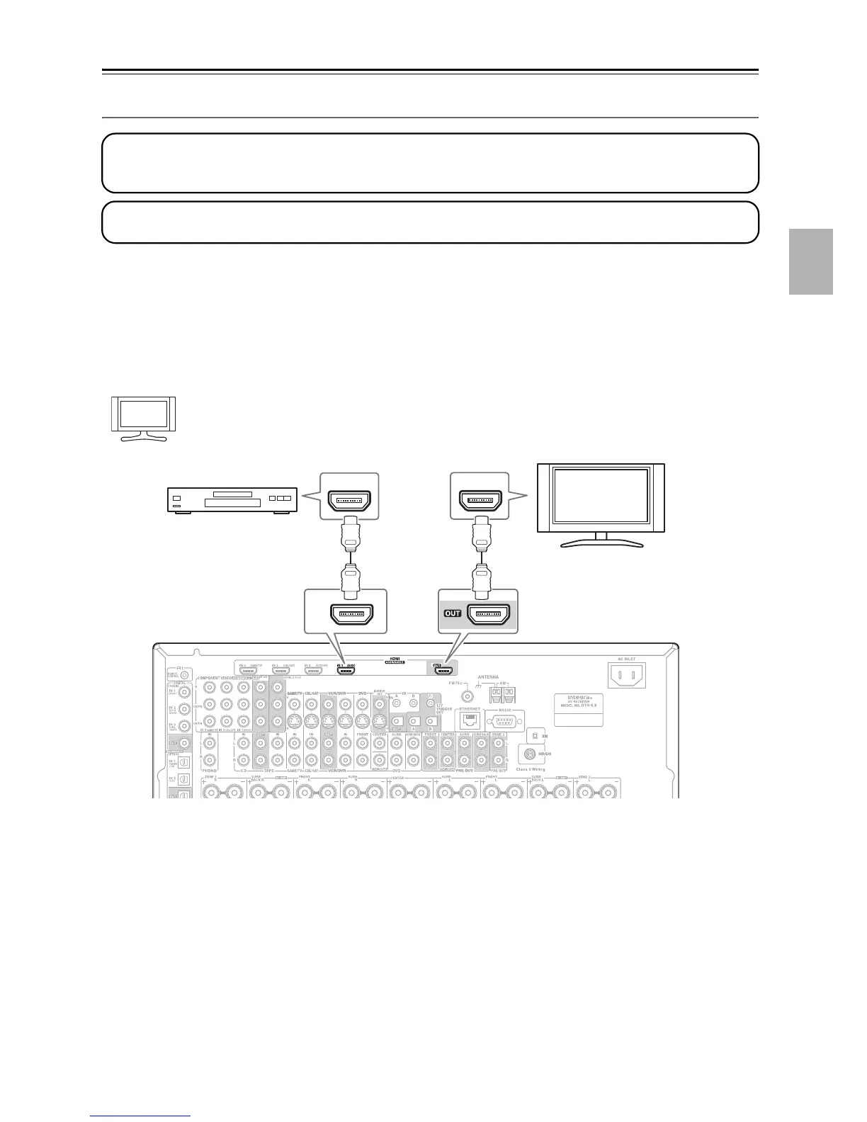 Use HDMI cables to connect the AV receiver’s HDMI jacks to your HDMI-compatible Blu-ray player/DVD player,