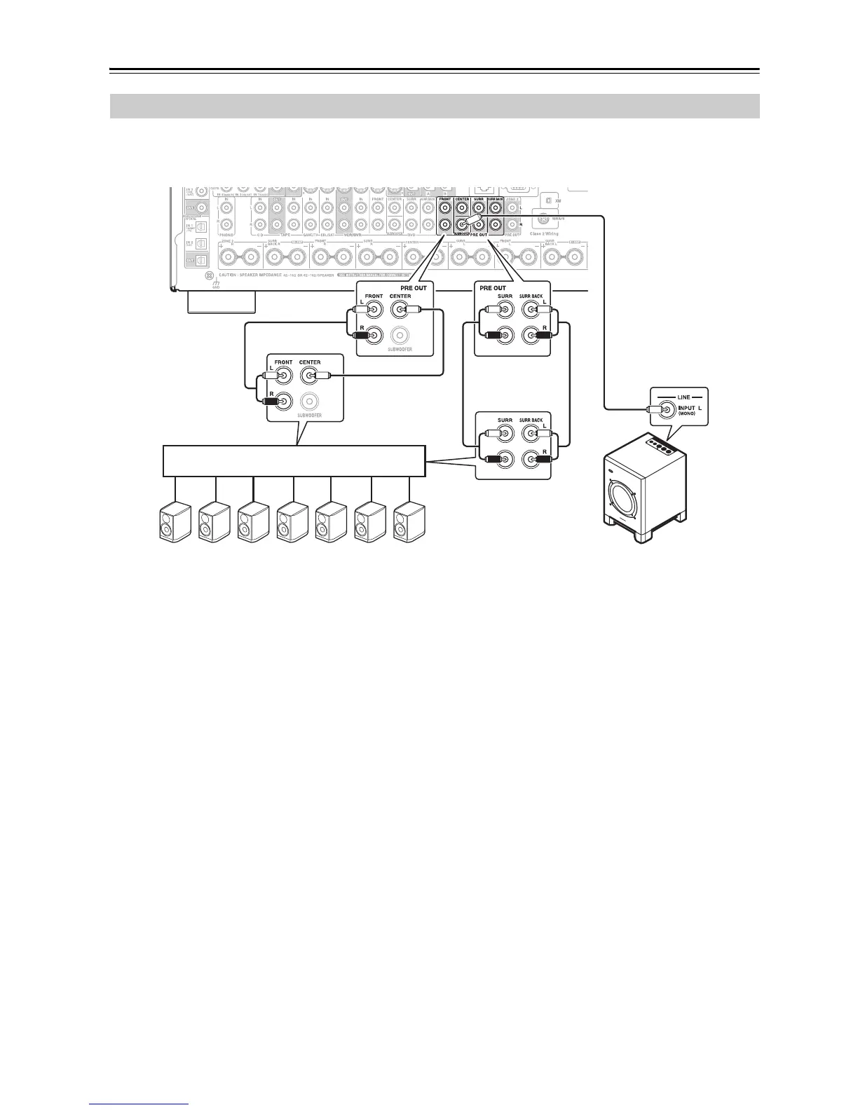 If you want to use a more powerful power amplifier and use the AV receiver as a preamp, connect it to the PRE OUT