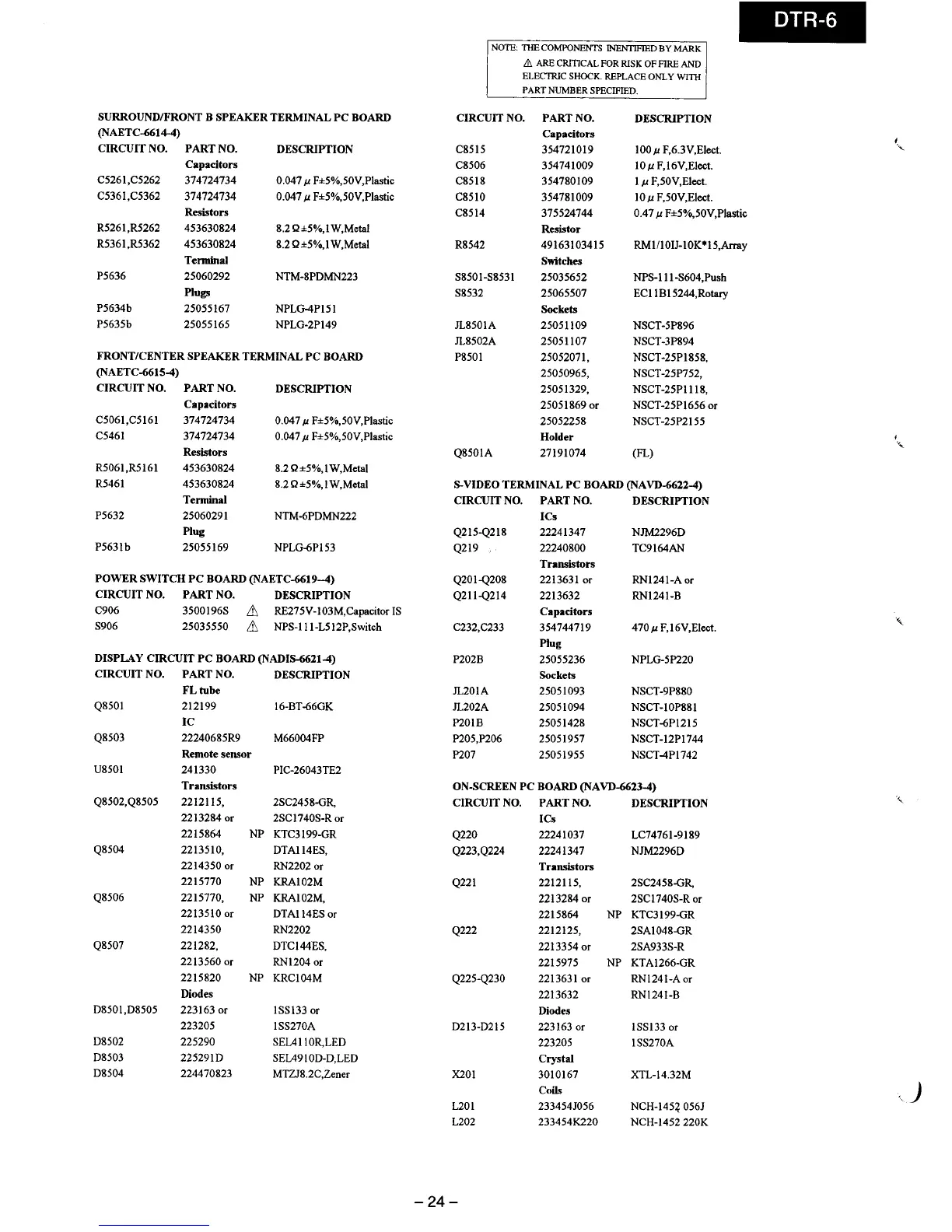 Integra DTR-6 - Speaker Terminal and S-Video Terminal Board Parts