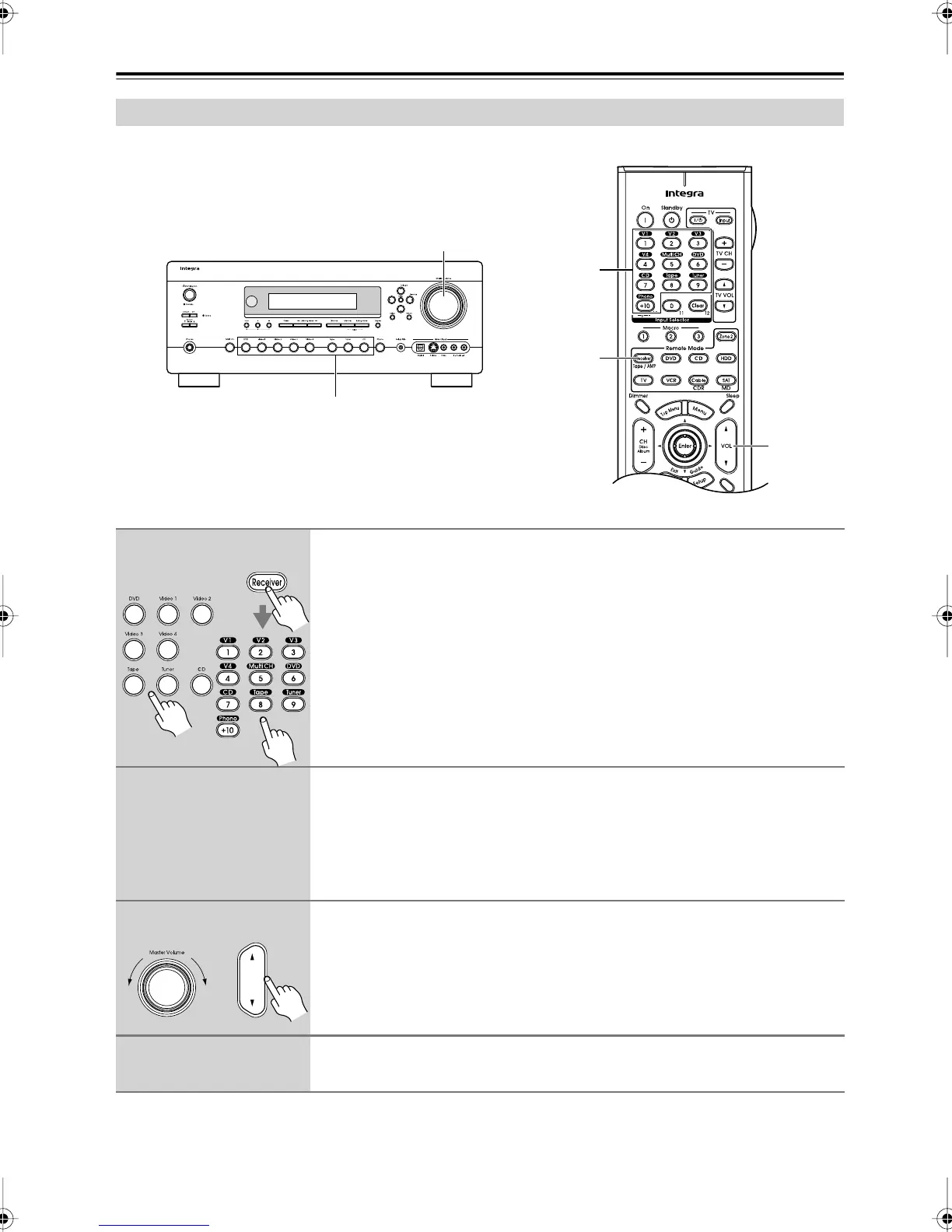 Use the AV receiver’s input selector buttons to select the input source.