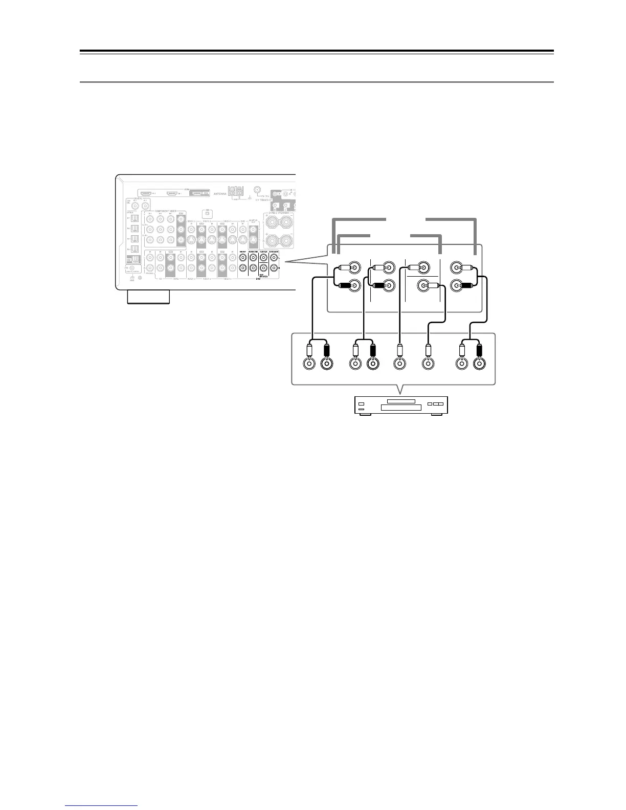 Use a multichannel analog audio cable, or several normal audio cables, to connect the AV receiver’s DVD IN FRONT