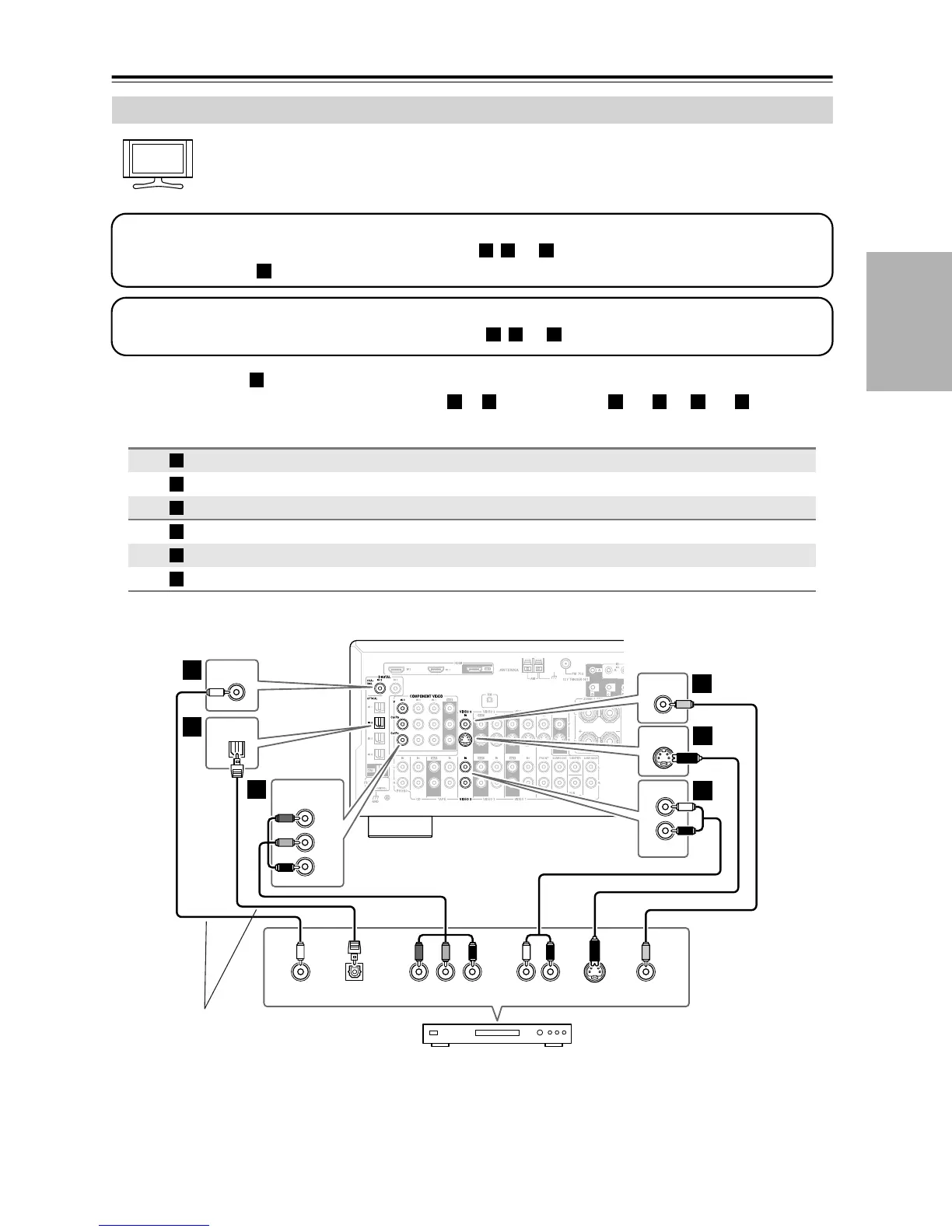 If you use connection , you must connect the AV receiver to your TV with the same type of connection.
