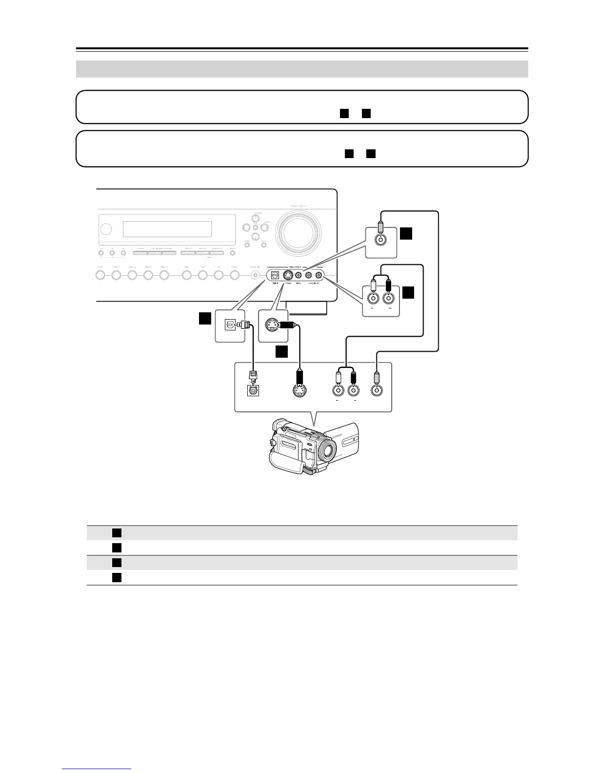 Connection AV receiver Signal flow Camcorder or console