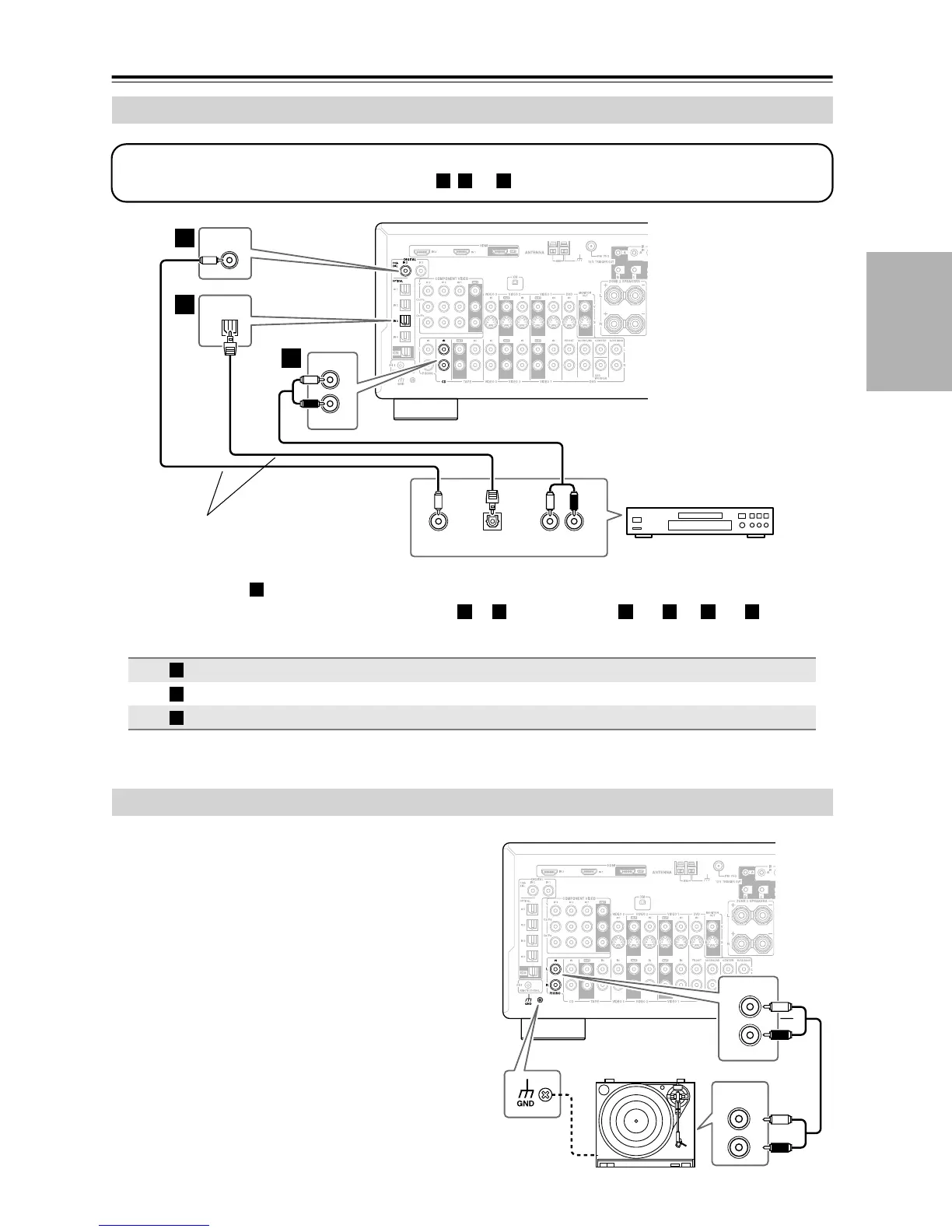 •To connect the CD player digitally, use connection or . (For Zone 2, use and , or and .)
