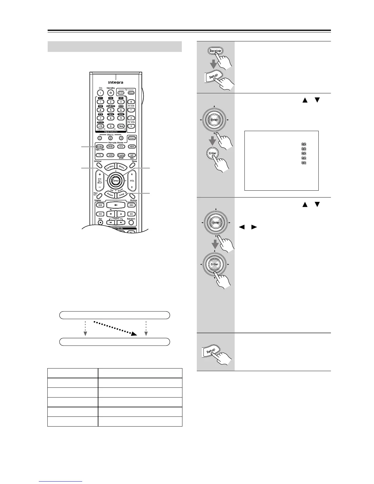 receiver by using its [Setup] button, arrow buttons, and