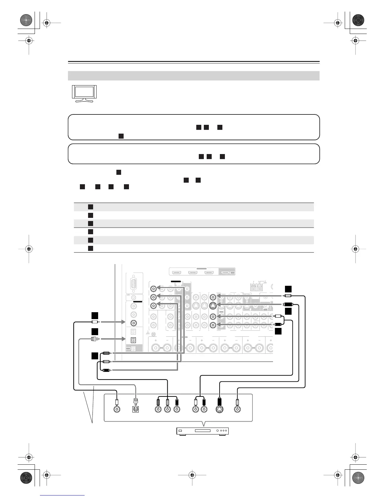 •With connection , you can listen to and record audio from the video source or listen in Zone 2 or Zone 3.