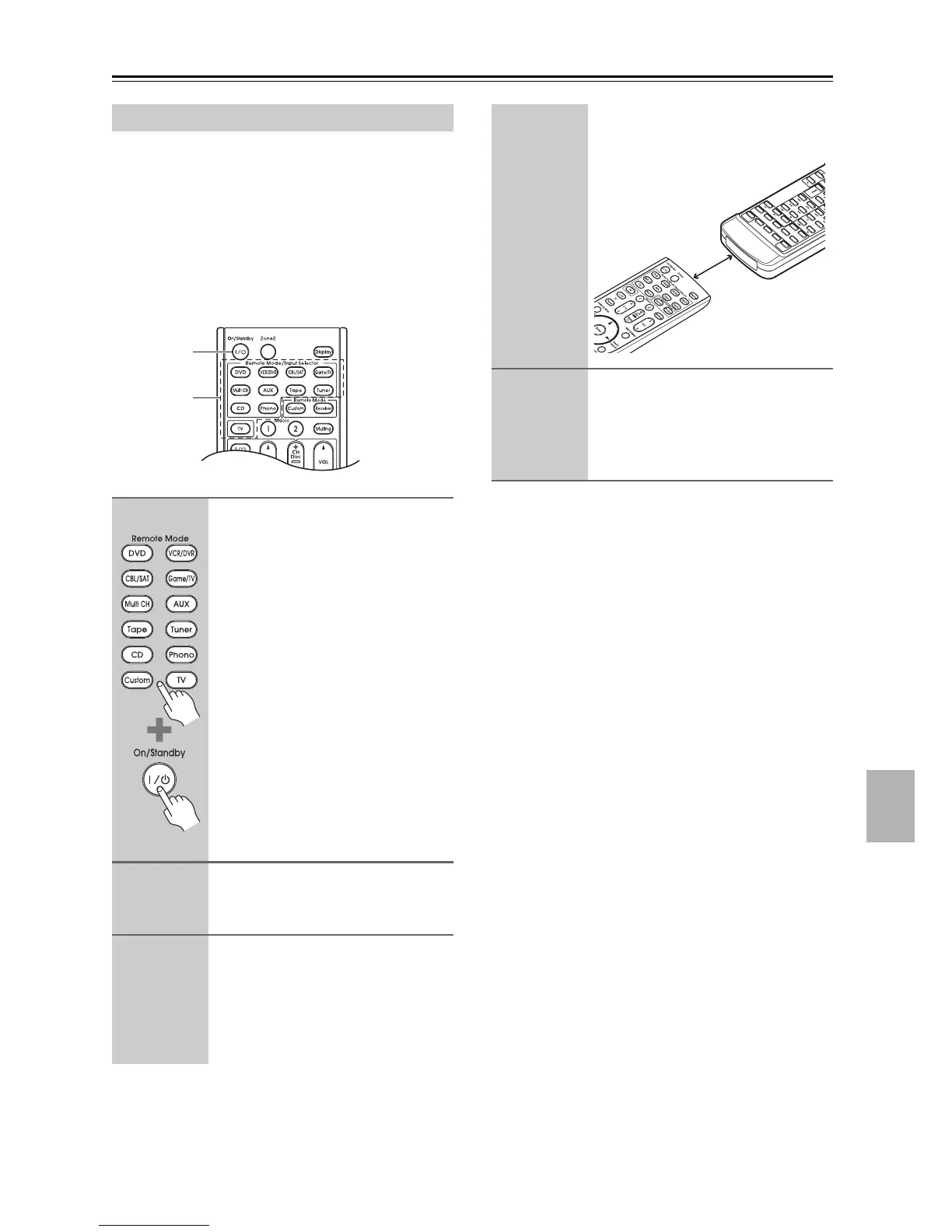 1. While holding down the Remote Mode button for