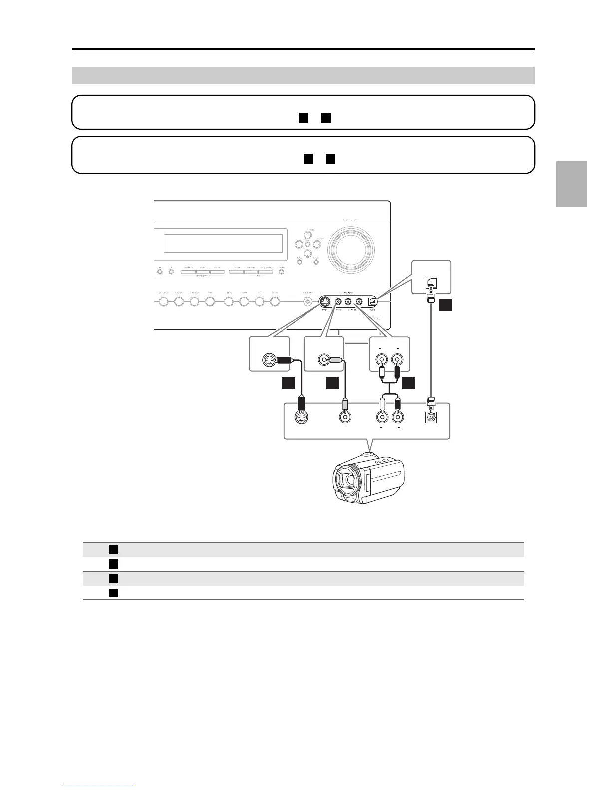 Choose an audio connection that matches the camcorder ( or ), and then make the connection.