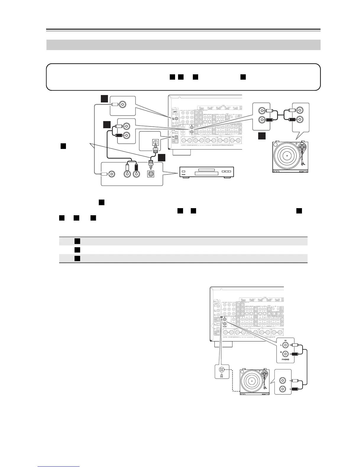 Choose a connection that matches your CD player ( , , or ). Use connection for a turntable with a built-in