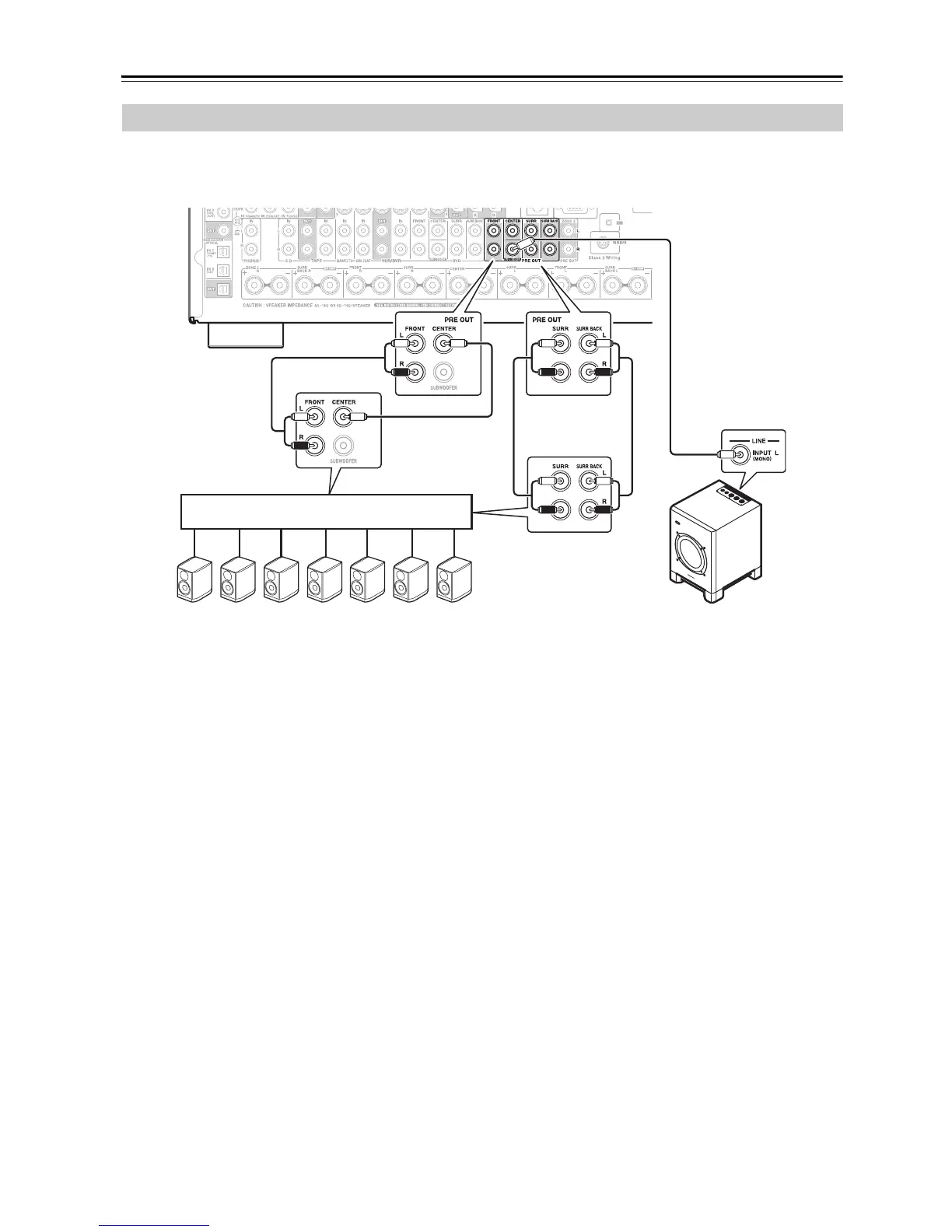 If you want to use a more powerful power amplifier and use the AV receiver as a preamp, connect it to the PRE OUT
