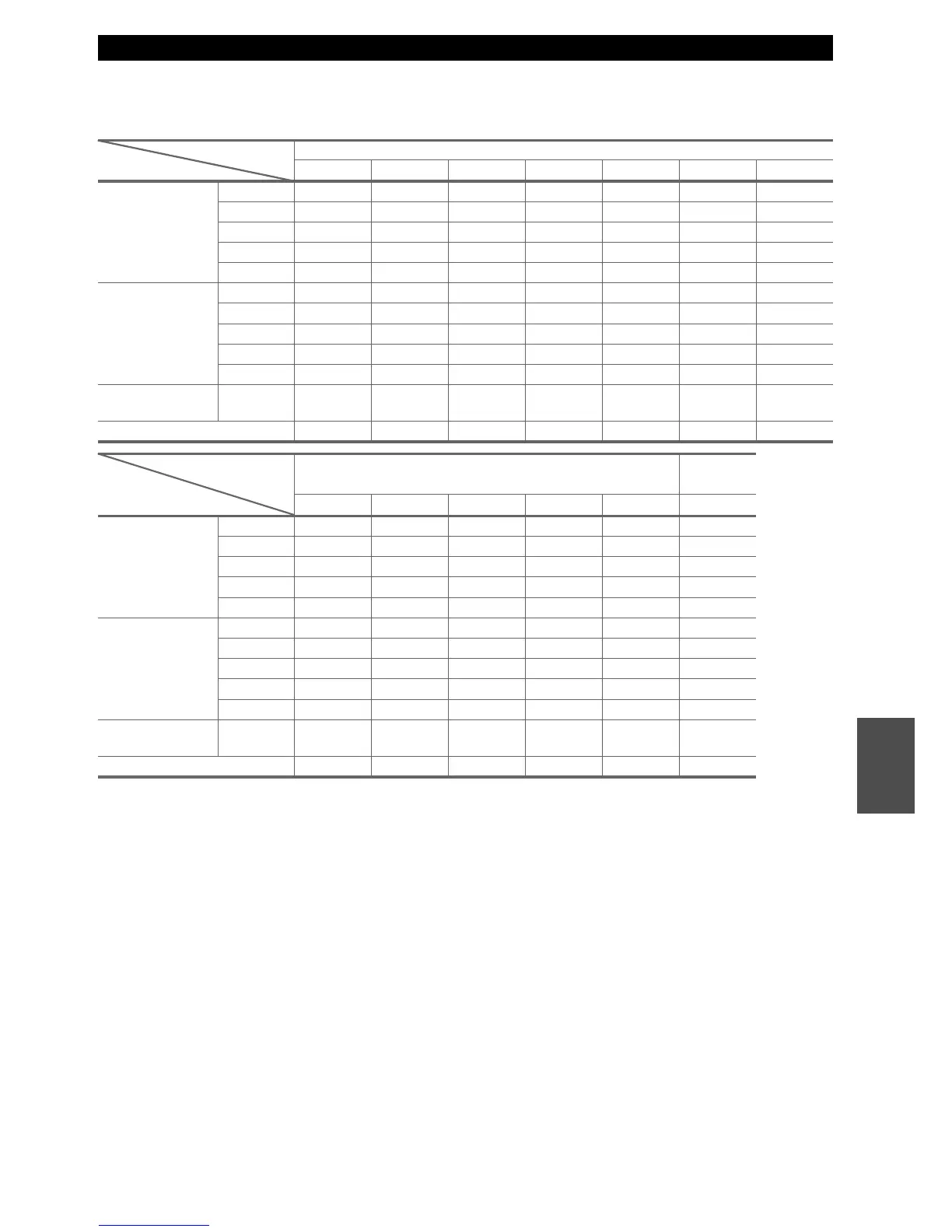 The following tables show how video signals at different resolutions are output by the AV receiver.