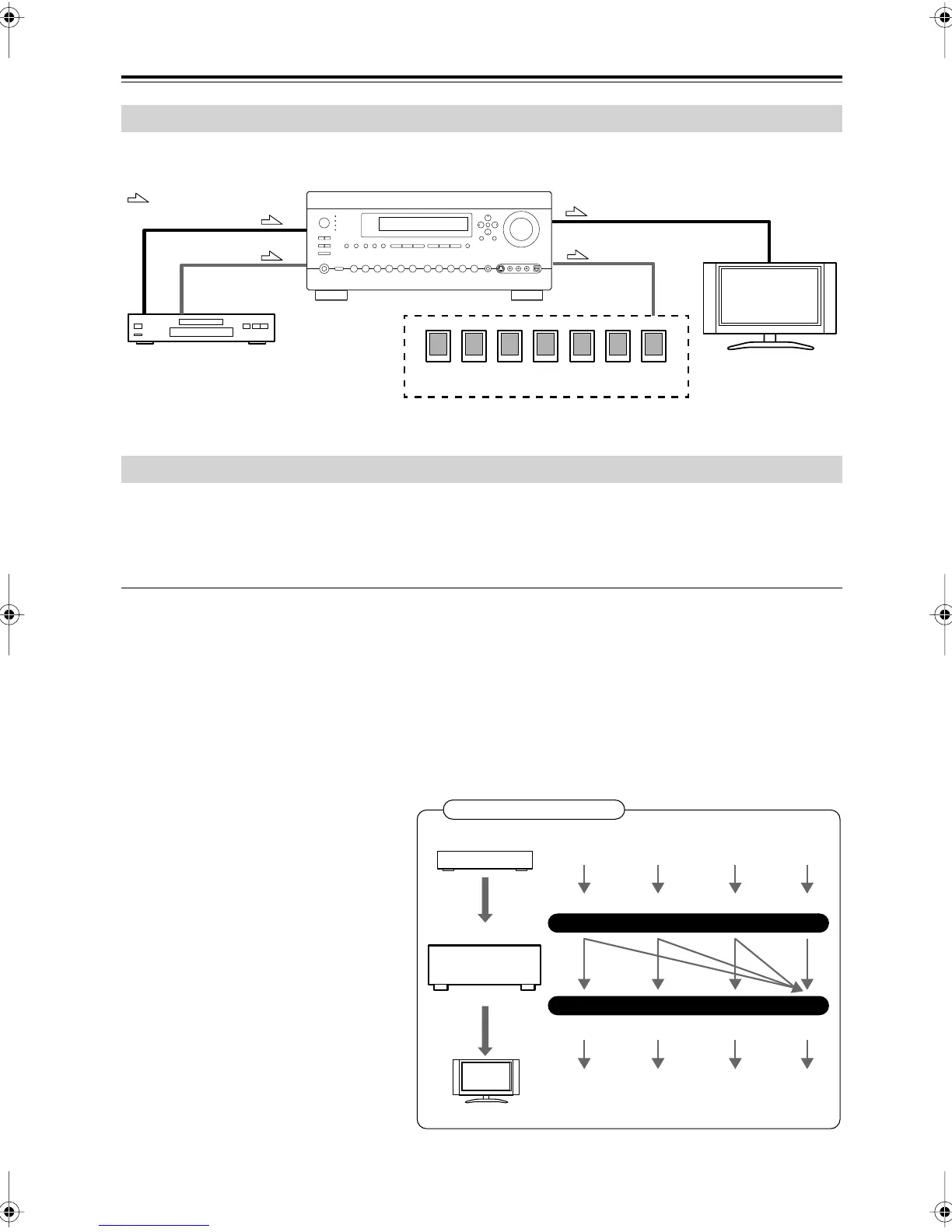 By connecting both the audio and video outputs of your DVD player and other AV components to the AV receiver, you